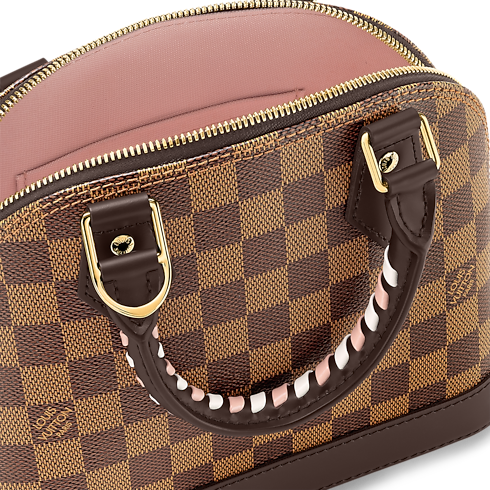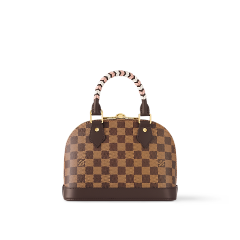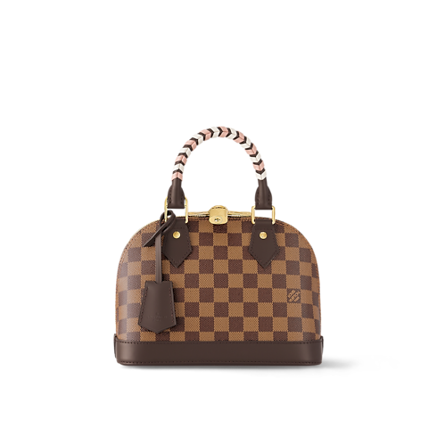 For the new season this Alma BB handbag sports a fresh take on the Maison’s signature Damier Ebene canvas. The color play on the bag’s braided handles add an irresistible crafted touch to this feminine piece, which can be styled in a host of ways, from hand carry to cross-body and more.