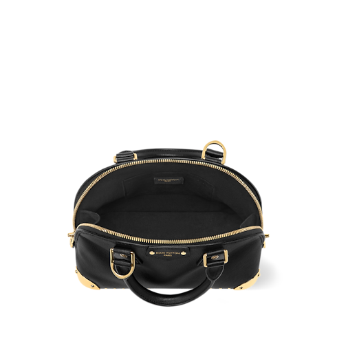 This edition of the Alma Trunk BB is offered in a timeless smooth calfskin. It is defined by its gleaming gold-toned hardware, from the signature padlock to the trunk-inspired corners and decorative chain. Elegant and functional, it is sized to fit daily essentials and includes a flat pocket to keep a cardholder or smaller items secure.