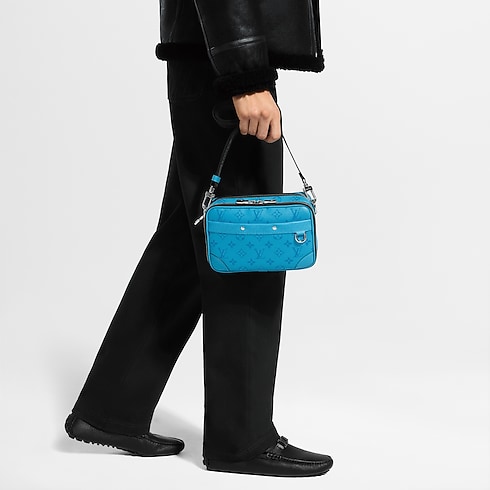 Sized like a vintage camera bag, the Alpha Messenger is crafted from colored Monogram coated canvas and Taigarama cowhide leather. Its understated tone-on-tone Monogram and wide black detachable strap lend a contemporary edge. Two zipped compartments secure essentials, while rivets and reinforced corners evoke the House’s trunkmaking legacy.