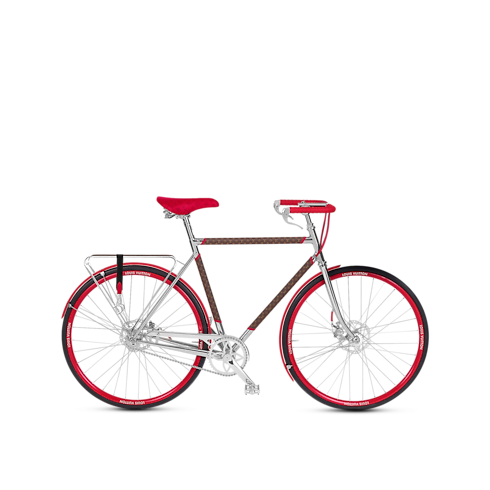 From the Monogram perforations on the leather saddle to the contrast edge-painting on the leather lengths that wrap the handlebars, the Bike MM Closed Frame is an exhibition of meticulous craftsmanship. It is assembled entirely by hand in the famed Maison Tamboite workshop in the 12th arrondissement of Paris. A luggage rack, elegantly topped in canvas, makes a useful addition.