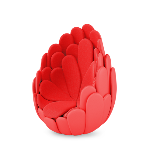 Like a strange and wonderful tropical flower, the Campana Brothers’ Nest rises to envelop the sitter as if in an affectionate embrace. Each of its layered petals are lined with elegant Louis Vuitton leather on the outside and an inviting, warming fabric on the inside for absolute comfort. To stretch out or curl up in the Nest is to discover a haven that feels created for luxuriant well-being, generously spacious for one person, and cosy and loving for two.