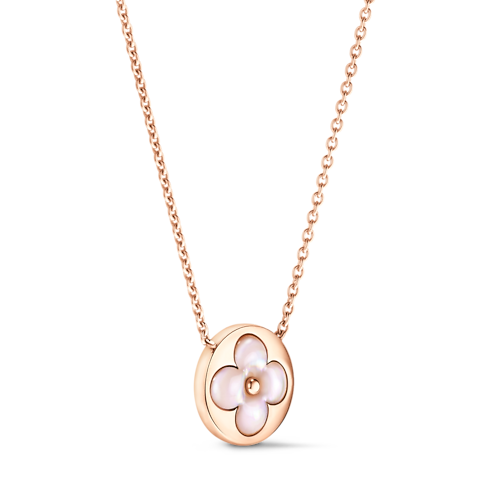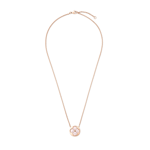 The Color Blossom pieces celebrate the emblematic Monogram Flower, designed in 1896 by Georges-Louis Vuitton, son of the founder. Crafted in 18-karat pink gold, this precious pendant features a Sun motif carved from pink mother-of-pearl, hand-polished to a high gloss. Months of work were necessary to perfect the stone’s subtle curves and sparkle. This delicate pendant is an invitation to stack, mix or match with other models from the collection.