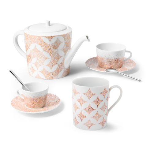 With its practical, user-friendly shape and elegant pattern, the Constellation mug makes the enjoyment of hot drinks a special pleasure. Expertly crafted in fine extra-white porcelain, it features an eye-catching, graphic motif inspired by the famous Monogram Flower and Diamond signature. An additional flower on the inside of the mug provides an extra House flourish.