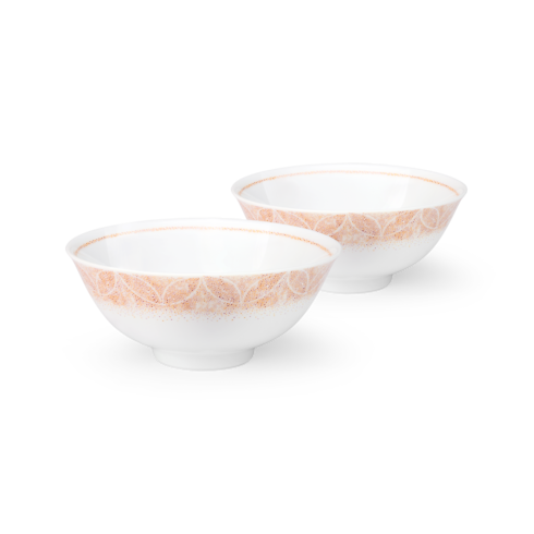 Designed to accompany the other pieces from the same collection, this lovely set of two rice bowls combines the beauty of extra-white porcelain with a subtle signature touch. The Constellation pattern, an intricate interplay of Monogram Flowers and Diamonds, adorns the outside, echoed by a fine line around the inside rim for a refined accent. And these bowls are practical as well, both machine washable and microwave safe.