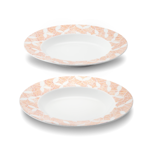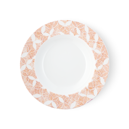 The ideal accompaniment to the other pieces in the Constellation collection, this set of two soup plates pays homage to a classic Louis Vuitton icon. Rendered in fine porcelain, their eye-catching graphic pattern, reminiscent of a starry night, was inspired by the emblematic Monogram Flower and Diamond signature. And they are as practical as they are beautiful, suitable for use in a dishwasher or microwave oven.
