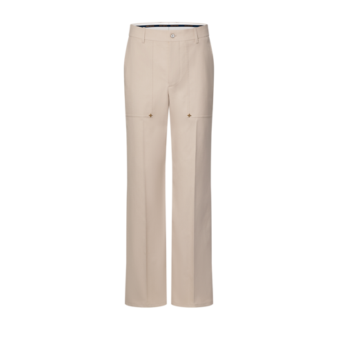 These elegant beige tailored pants have a workwear-inspired silhouette. Cut from a refined organic cotton-silk blend
