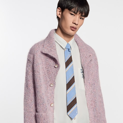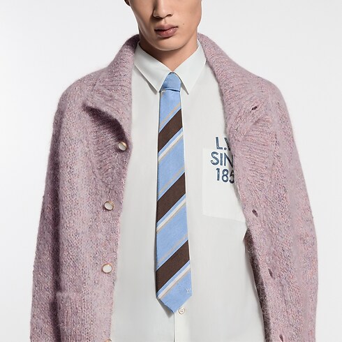 Fashioned in Italy from 100% silk, the Cricket tie is a gentlemanly style in a enduringly cosmopolitan palette of blue and brown. The clean jacquard stripes with white and gold lines reflect India's zeal for tailoring and craftsmanship, that is evident, game after game, on the beloved sport's oval.