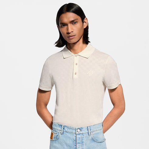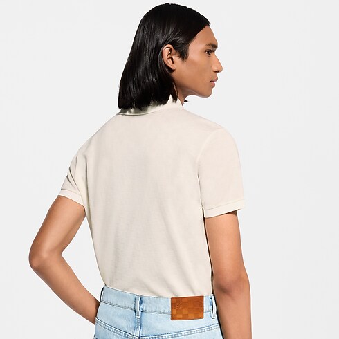 This essential polo shirt in organic cotton piqué is crafted with a discreet allover Damier jacquard and signed with an embroidered Marque L.Vuitton Déposée on the left chest. Elevated with three pearl-effect buttons on the closure for a dandy twist, this piece completes a wide range of everyday looks.