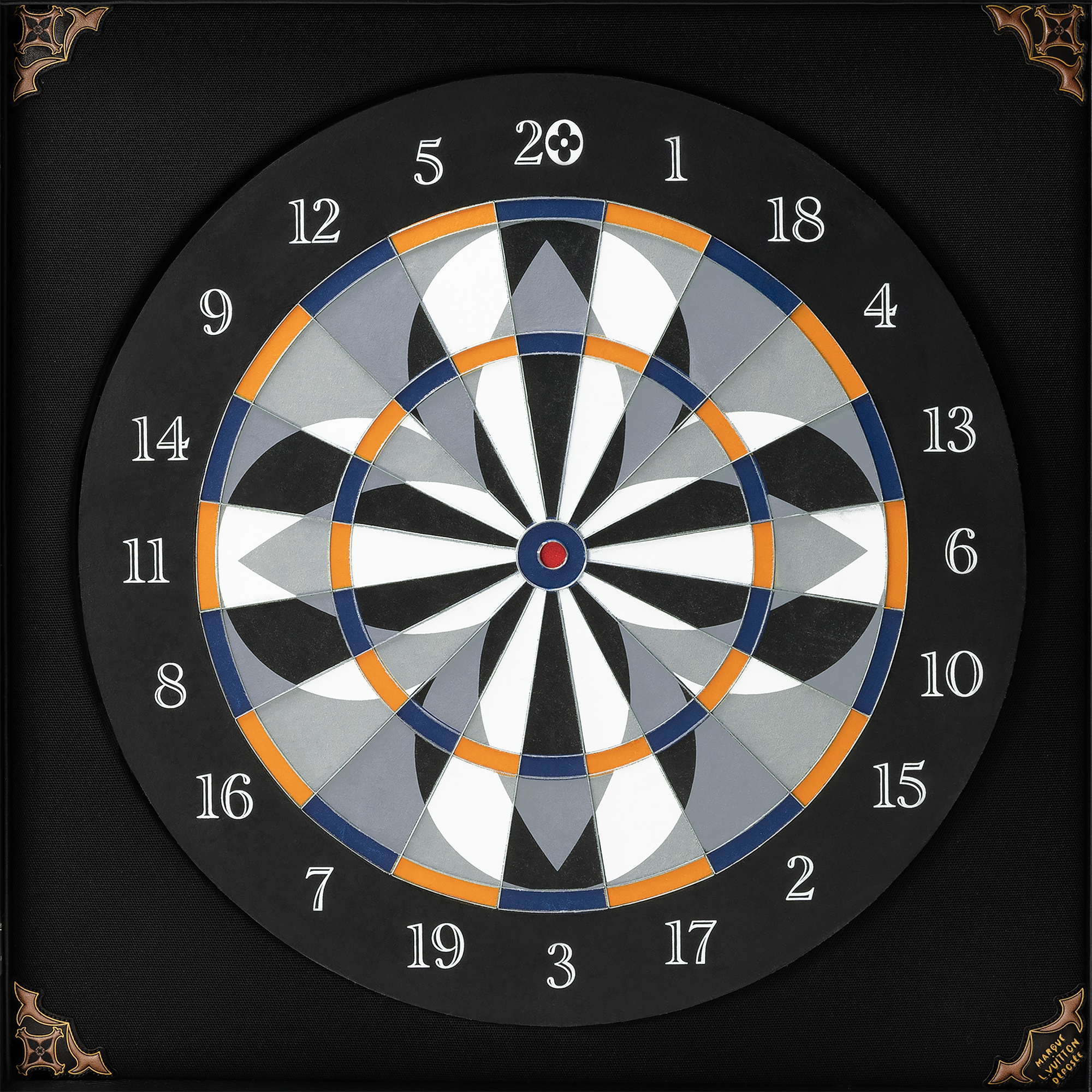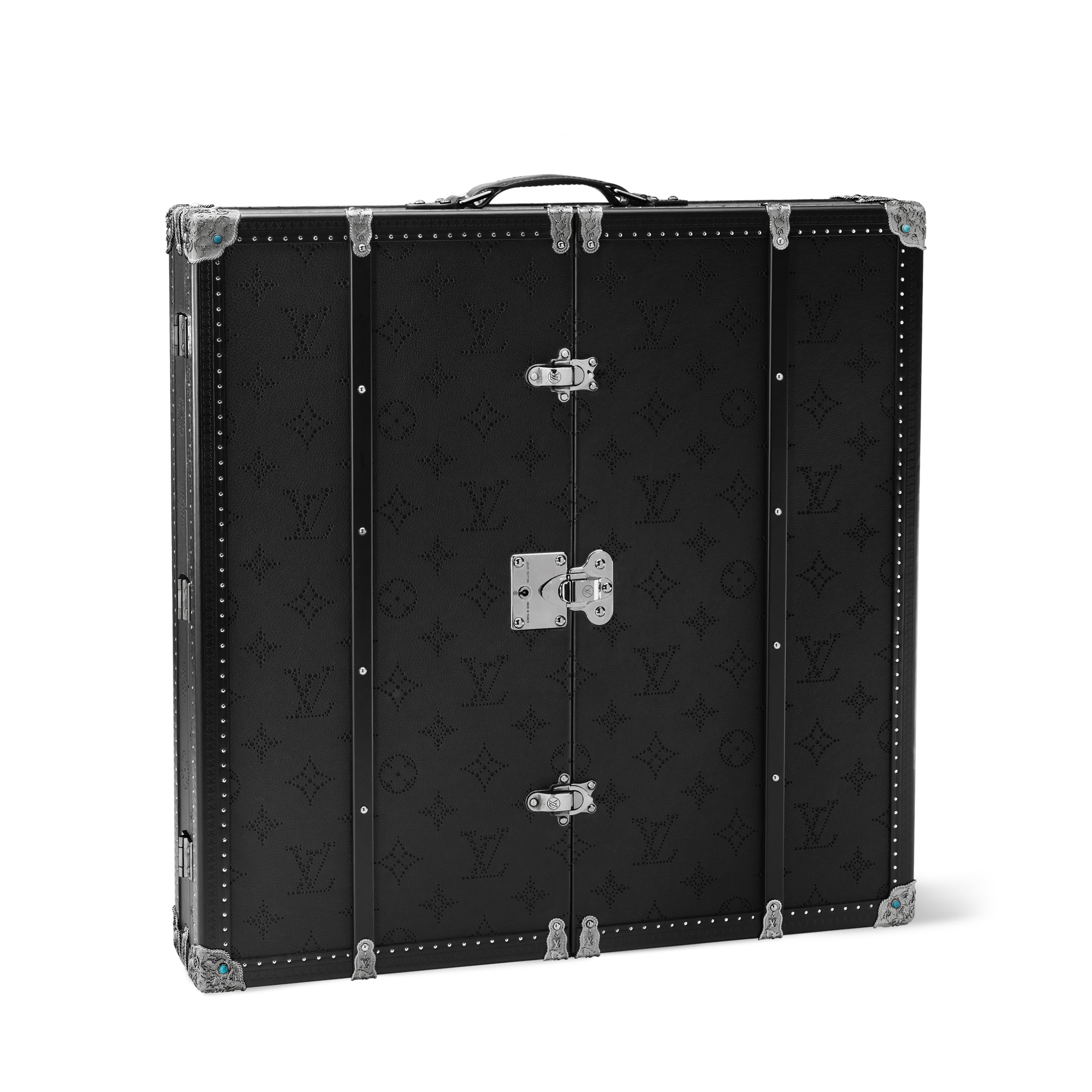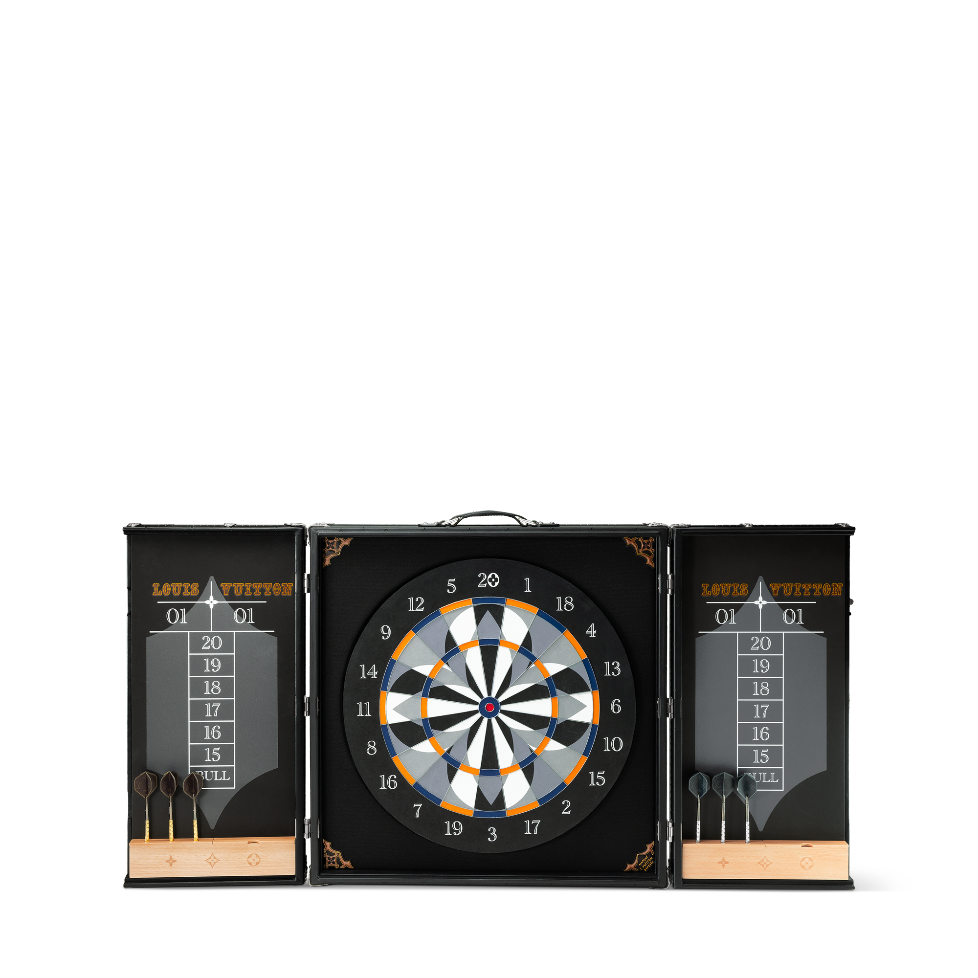 Revisiting the traditional dart game in a fun and decorative way, Pharrell Williams introduces the Dart Trunk. This animation offers a balance between the black monogram perforated leather exterior and exceptionally carved metallic pieces, offering a sculptural touch to Hardsided. From the target with a monogram flower pattern, to the darts with monogram engraving, no details have been left out.