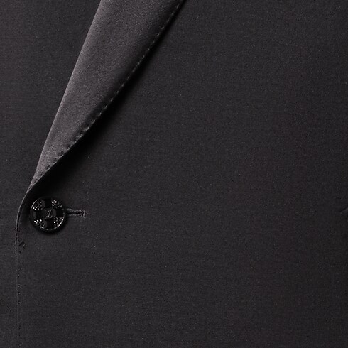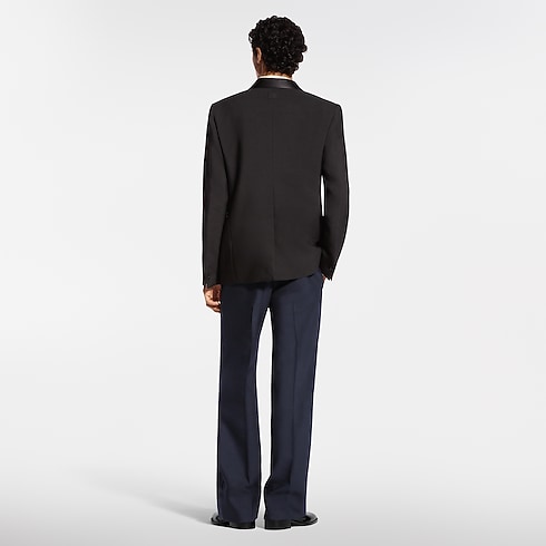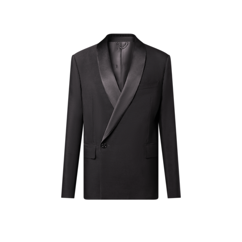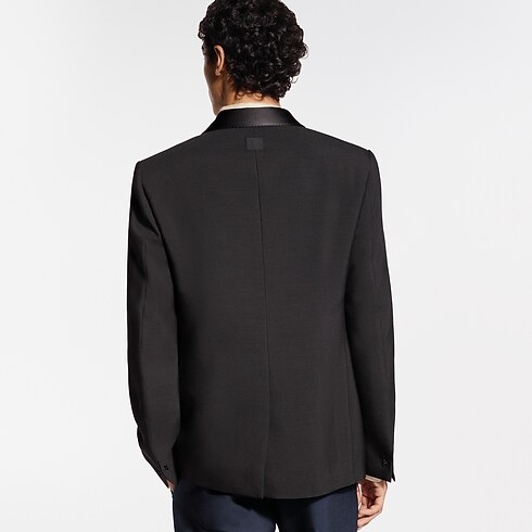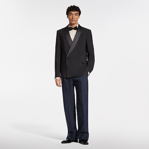 Minimalist lines accentuate the impeccable elegance of this double-breasted tuxedo jacket