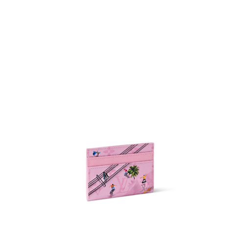 The Double Card Holder is made from colored Monogram canvas, decorated with a sports scene viewed from above. The subject and realism of the image bring a playful touch to this classic accessory. The interior, lined with cowhide leather, features four card slots along with a central pocket for smaller items.