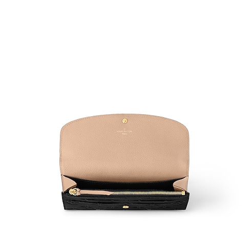 The Emilie wallet is crafted from Monogram Empreinte leather, embossed with the iconic Monogram pattern, and lined with supple grained leather in a contrasting shade. Its envelope-style flap, which is secured with a color-matched press-stud, lifts to reveal a well-organized interior with a large compartment, zipped coin pocket and card slots.