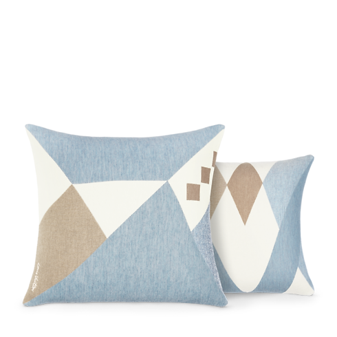 Originally created in the early 20th century by Charlotte Perriand, the striking geometric pattern of the Everest cushion reflects the historic designer’s passion for Alpine landscapes. This graphic composition is woven with a sophisticated 3D effect in a refined wool-cotton blend softened with cashmere. Its cool palette of blues brings a touch of freshness to balmy summer evenings. An elegant addition to any décor, this comfortable cushion exemplifies the House’s dedication to craftsmanship and creative design.