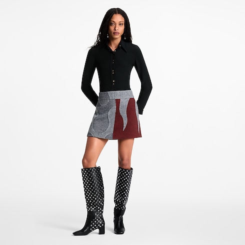 This statement mini skirt from the runway collection nods to medieval heraldry with a graphic play of contrasting jacquards highlighting each side. It is crafted from wool in a streamlined silhouette with a flattering wide waistband and fastened with an invisible zipper at the back for a clean finish. Complete with a silk lining.