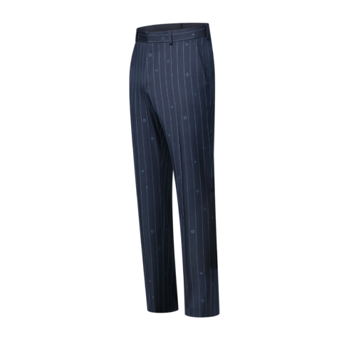 These navy blue cigarette pants play with the codes of tailoring by reinventing the classic pinstripe motif, which is reconfigured here as a tonal Monogram Pinstripes jacquard with Monogram elements dispersed amongst the stripes. Crafted from fine wool, these flattering pants make a sophisticated business suit paired with a matching jacket.