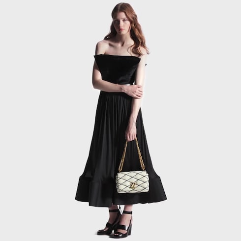 Fashioned from soft, luxurious lambskin, the GO-14 MM bag features the signature quilted pattern designed for the Maison’s historic trunks. Accented with a gleaming golden LV Twist lock, this versatile model can be carried by the top handle or worn on its sliding chain. Alternately, the top handle can also be converted into a leather pad on the chain for a comfortable shoulder or crossbody carry.