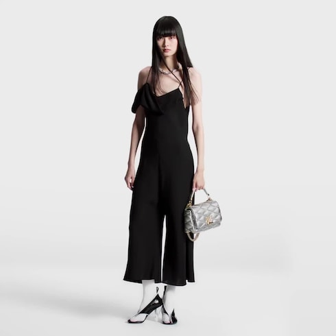 This GO-14 MM handbag in silver-color lambskin was introduced in the Spring-Summer 2024 Collection. The quilted lamb leather features a glamourous metallic finish. Gold-color hardware perfectly complements the silver leather. The GO-14 has both a removable handle for hand carry and a detachable and adjustable sliding chain for shoulder or cross-body wear.