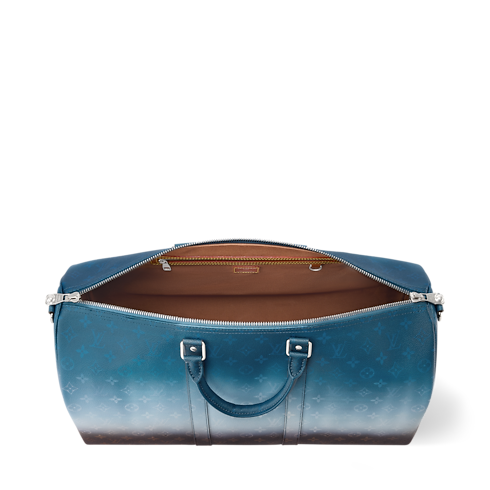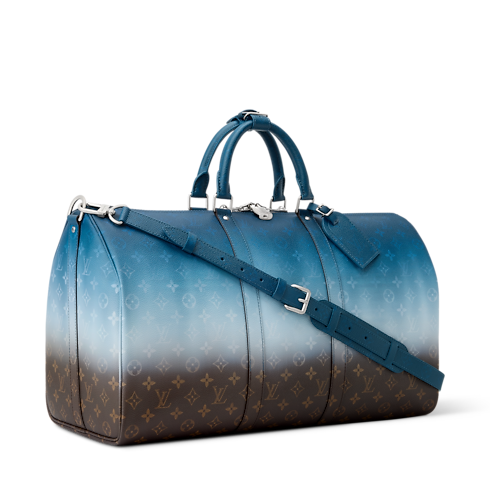 Inspired by India’s bold, colorful textiles, this Keepall Bandoulière 50 in Monogram Pigment coated canvas is a burst of chromatic joy. The Monogram Ebene motif is reworked with a gradient effect echoed across every detail. Cowhide leather trim, top handles, and removable strap are all rendered in the gradient’s deepest shade.