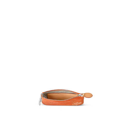 Updated in a seasonal colorway, this small Key Pouch is crafted from Monogram Heritage canvas, paying tribute to the House’s heritage and quality craftsmanship. It is trimmed with smooth cowhide and includes a silver-toned chain, complete with a hook to attach keys. There is enough space inside to store coins and bills.