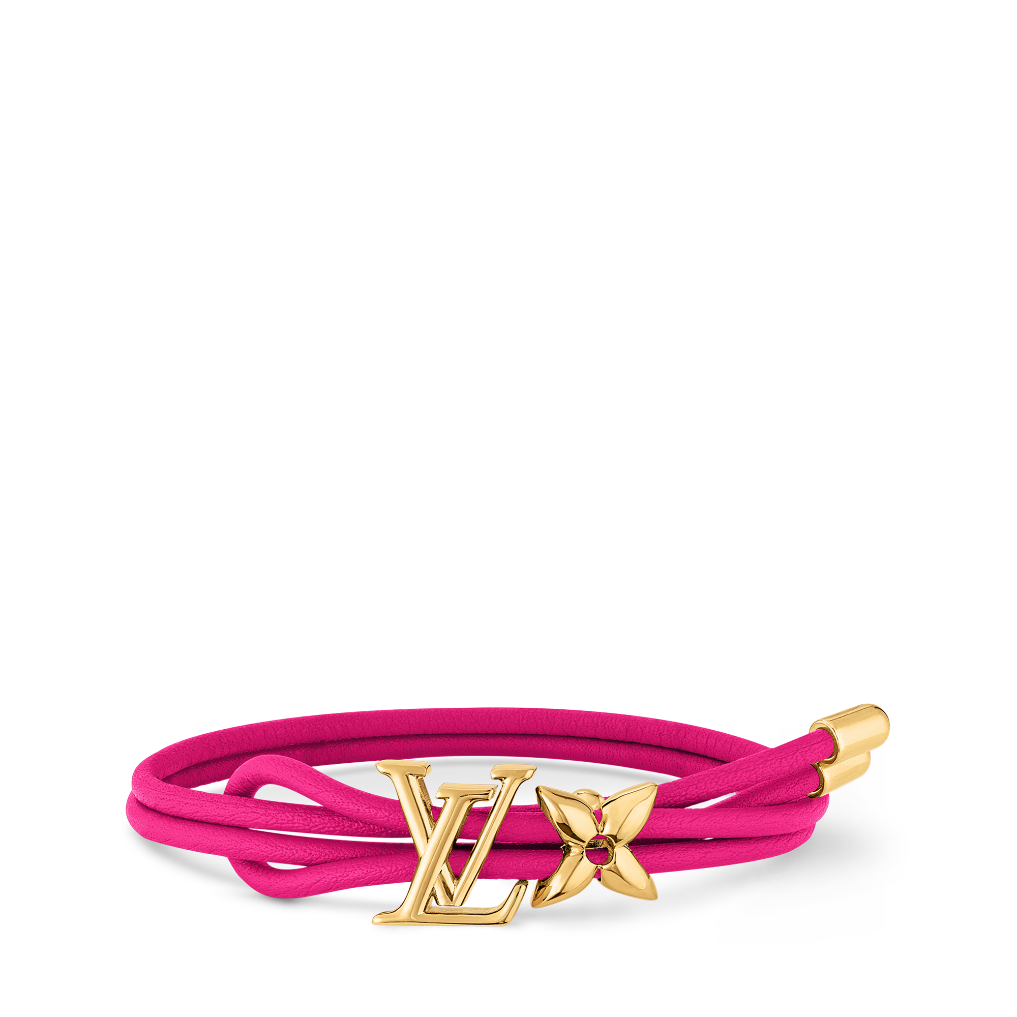 The LV Bloom bracelet combines a smooth leather strap with endearing House motifs. An LV Initials charm sits alongside a polished Monogram Flower at the front of the piece, while the double-strap design is topped off with coordinating metal. An innovative closure allows the bracelet to be adjusted for a comfortable fit.