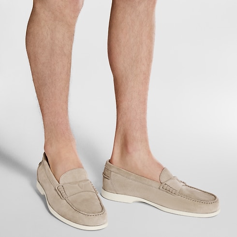 The LV Croisette loafer in suede calf leather draws inspiration from the French Riviera for its relaxed yet stylish design, which is perfect for warmer days. The strap on the upper is signed with a tonal detail of a half Monogram Flower, while the supple and lightweight rubber outsole bears the LV Initials.