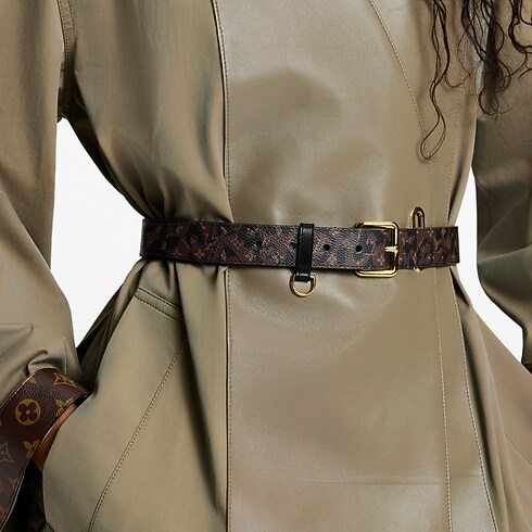 The on-trend, contemporary design of the LV D-Ring belt brings fresh energy to a timeless House signature. Its broad canvas strap is adorned with a whimsical variation on the iconic Monogram pattern, reinterpreted as a jungle-chic leopard print. And its practical D-ring is perfect for attaching a coin purse or decorative charm.