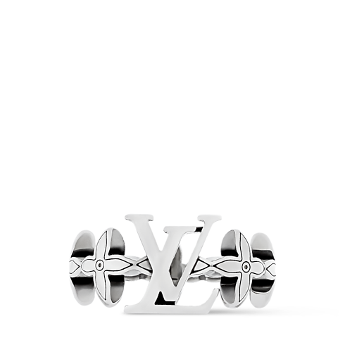 The LV Flower Puffy Chain ring is a sculptural reimagining of the iconic Monogram. The faces of the flowers are gently rounded, as is the center pair of Initials, and etched with a fine outline of black enamel. This union of materials and shape is a bold celebration of the House iconography.