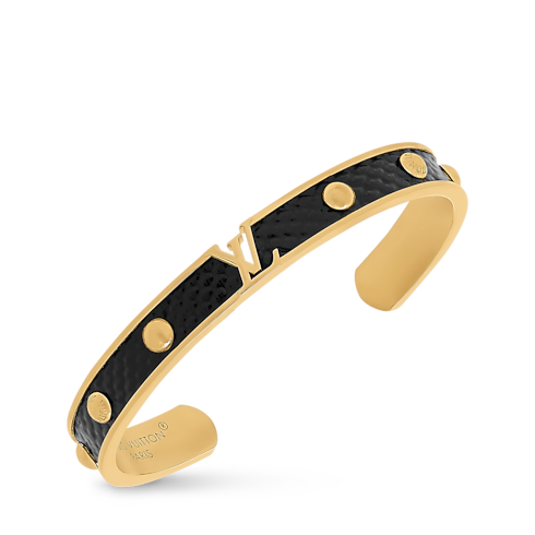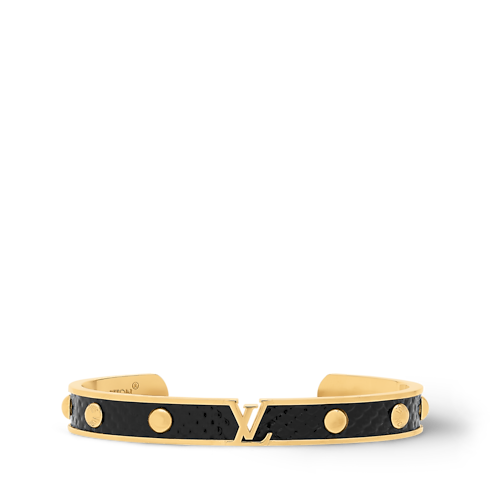 The eye-catching design of the LV Initiales bracelet features a gold-colored metal band lined with precious karung leather and accented with studs for a touch of edgy elegance. But its centerpiece is the House’s famous initials, expertly crafted with a sophisticated openwork effect. Perfect for everyday wear, this on-trend yet timeless bracelet is a true statement piece.
