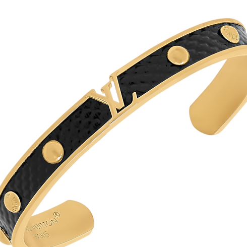 The eye-catching design of the LV Initiales bracelet features a gold-colored metal band lined with precious karung leather and accented with studs for a touch of edgy elegance. But its centerpiece is the House’s famous initials, expertly crafted with a sophisticated openwork effect. Perfect for everyday wear, this on-trend yet timeless bracelet is a true statement piece.