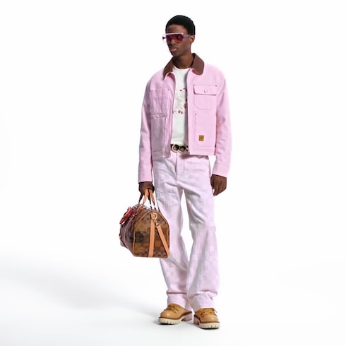 The LV Remix derby in calf leather draws inspiration from classic hiking boots, reimagining their proportions to create a fashion-forward silhouette. The upper combines thick laces and Monogram Flower-engraved hooks with details taken from Louis Vuitton leather goods, notably a key bell in Monogram canvas and a natural leather back tab with yellow stitching. This model is finished with a chunky rubber outsole.