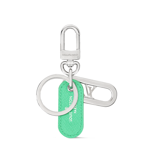 Animating the timeless LV Signature into the seasonal taigarama colors. It features an LV link charm in silver color polished hardware and a contrasting plate crafted from Monogram canvas on one side and plain leather on the reverse. Its dual functionality makes this accessory a versatile option.