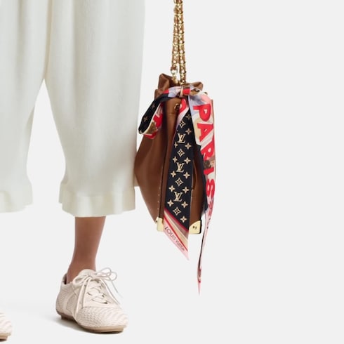 The all-silk LV Wonderland BB bandeau is a colorful ode to creativity and craftsmanship. Its eye-catching pattern depicts a whimsical futuristic landscape accented with Monogram Flowers and iconic Louis Vuitton luggage creations. Outsized letters with a striking 3D effect spell out the House’s name, adding an original signature to this elegant contemporary accessory.