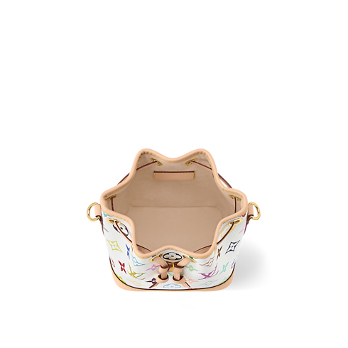 Marking 130 years of the iconic Monogram, this celebratory edition of the Nano Noé showcases the emblematic pattern in a joyful multicolor palette. From the Louis Vuitton x Murakami collection, it is crafted from canvas trimmed with cowhide and adorned with gold-toned hardware. The petite yet functional design is sized to fit everyday essentials and has a removable handle and strap, offering multiple styling options.