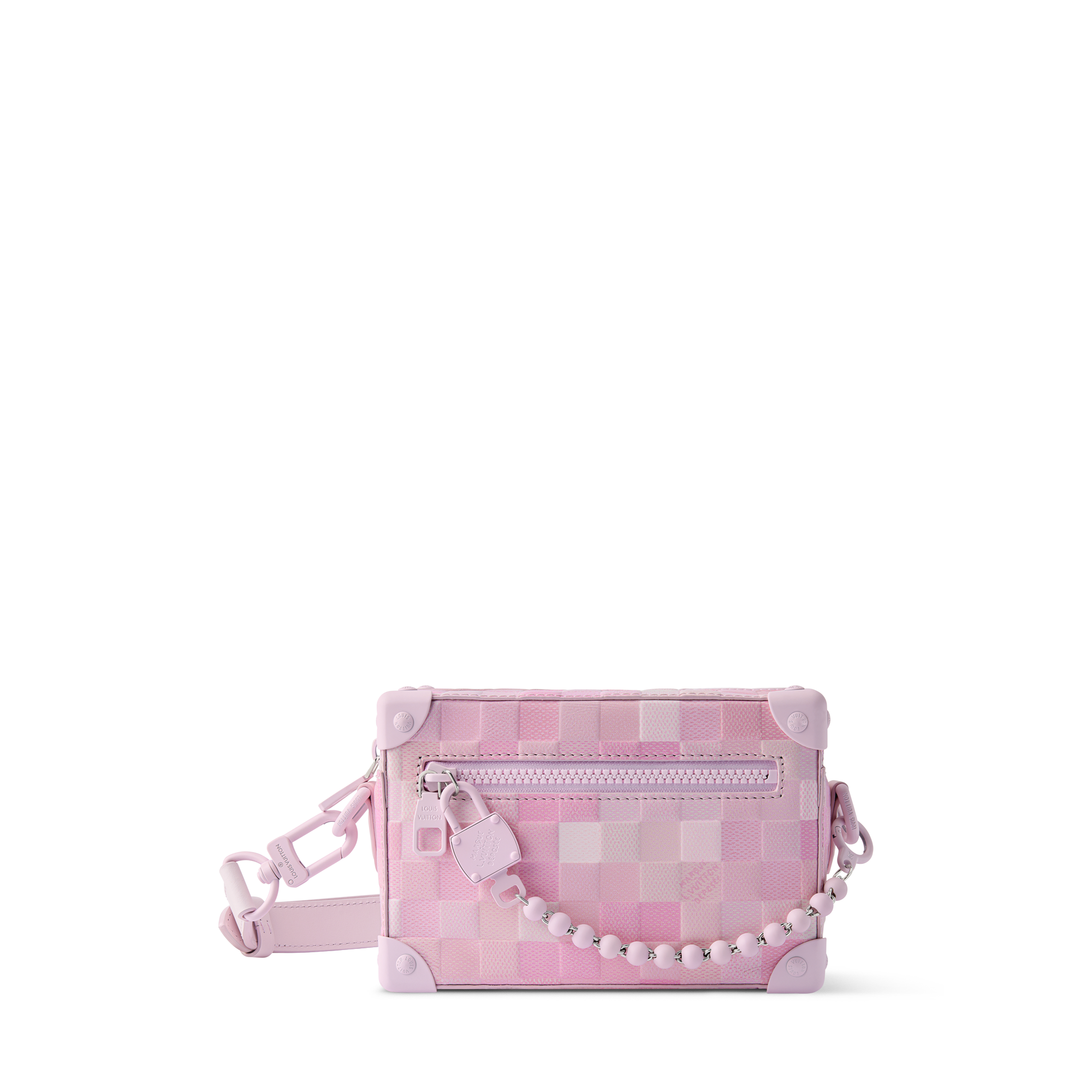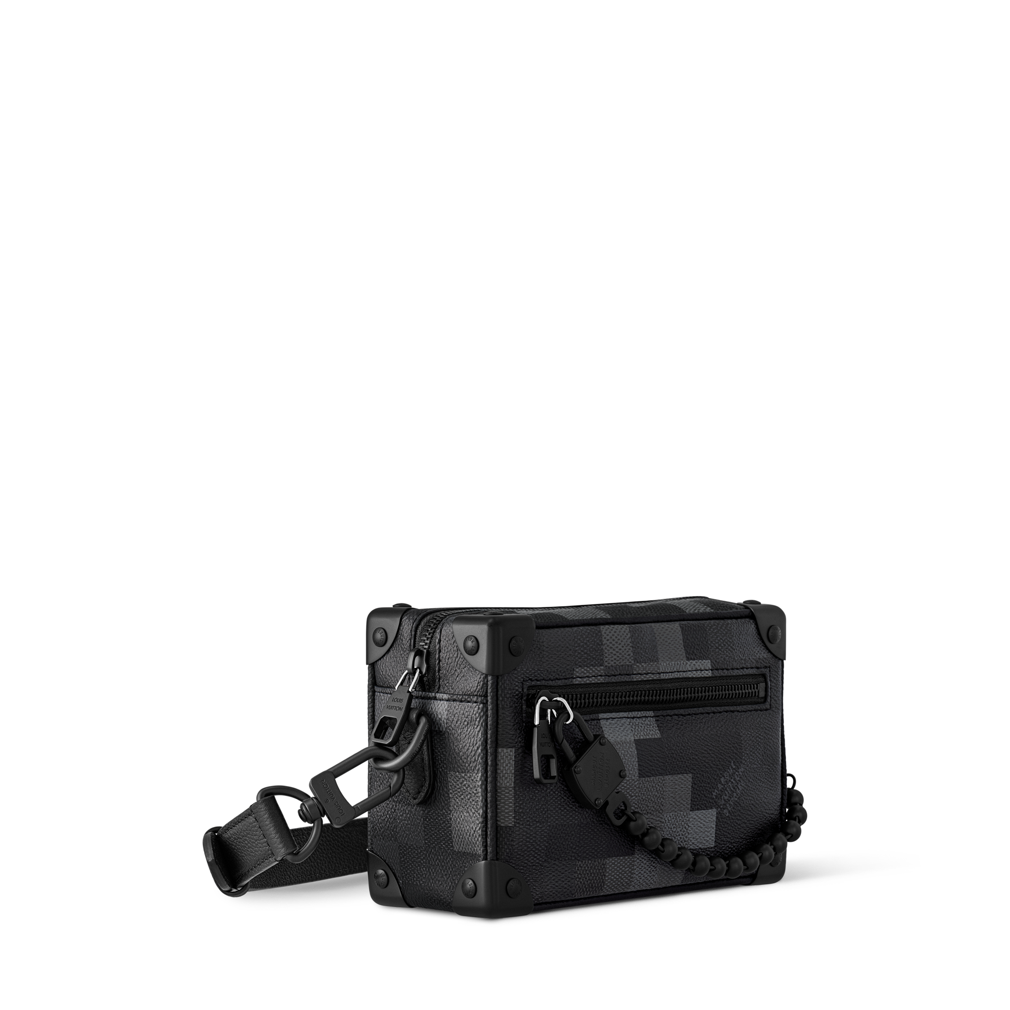 A monochromatic palette of greys and blacks brings an up-to-the-minute vibe to this Mini Soft Trunk in Damoflage Black coated canvas, trimmed in cowhide leather. With its subtly pixelated Damier checkerboard, this compact bag incarnates Pharrell Williams’ unique vision. Rolled-leather top handles and a removable, adjustable shoulder strap give carry options.