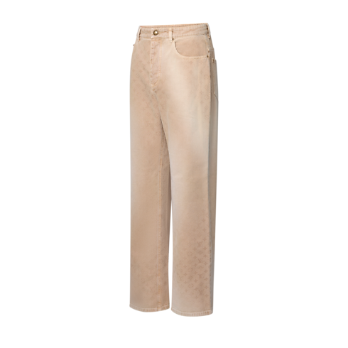 These camel-colored denim skate pants from the Spring-Summer 2026 show have a gently weathered look inspired by India’s natural textile dyeing traditions. They feature a Faded Monogram motif printed onto the cotton canvas while aged gold-toned rivets and a Nubuck Mini Damier jacqueron add refined accents. A matching jacket makes a total look.
