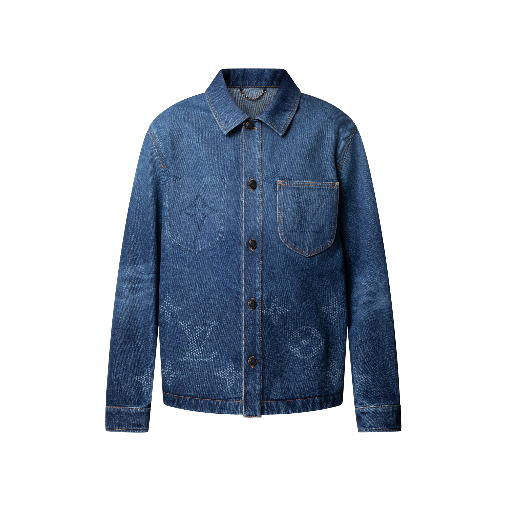 These organic denim workwear pants have an easy relaxed fit and a washed vintage finish. They are adorned with a Monogram Seeds motif in a sophisticated tonal gradient effect. Workwear details include side pockets and a hammer loop, while a leather Damier jacqueron at the back is signed with an embossed LV. A matching overshirt makes a graphic set.