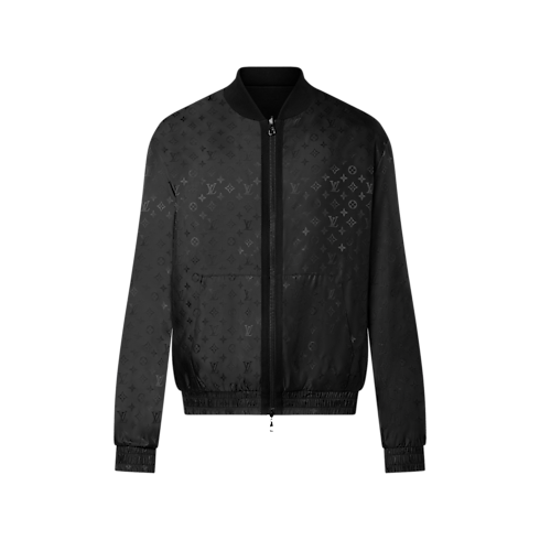 This lightweight reversible bomber is a mid-season essential. It has a shiny technical fabric featuring the Monogram motif on one side and compact cotton knit on the other. The collar is ribbed, while Monogram fabric covers the bottom hem and cuffs. It has a zipped double puller closure with knitted trim on the Monogram side. An embroidered LV on one kangaroo pocket completes this piece.