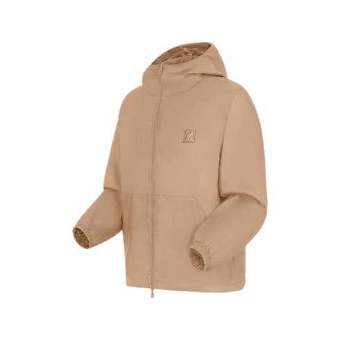Made from water repellent technical fabric, this elegant reversible windbreaker has a plain matte side enhanced by a leather LV tab on the chest, while the other side features an allover tonal Monogram jacquard. This versatile piece for changeable weather is easy to wear and match, making it a perfect addition to any wardrobe.