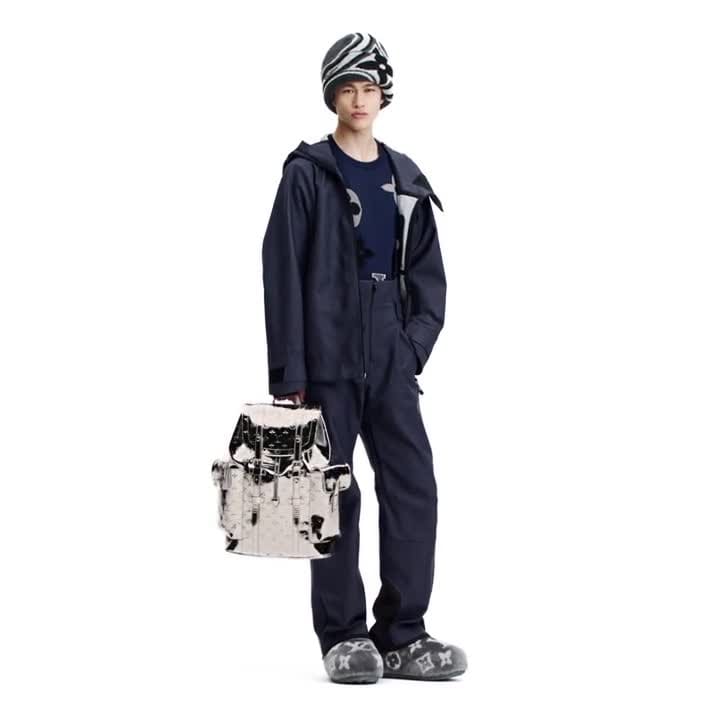 This short-sleeved crewneck is crafted from an organic cotton blend in rich dark blue tones, featuring a graphic intarsia motif with scaled-up LV and Monogram Flower signatures. Louis Vuitton craftsmanship is evident in the subtle tonal contrasts and stitch variations. This casual style transitions effortlessly between outdoor and everyday looks, bringing a bold signature accent to any ensemble.