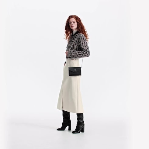 The Pochette Mylockme Chain is a stylish way to carry a smartphone and other essentials. Crafted from supple calf leather, this pouch reprises the key signatures of the Lockme line: the envelope-style flap, front pocket and LV Initials clasp. It can be carried over the shoulder or across the body on its long chain.