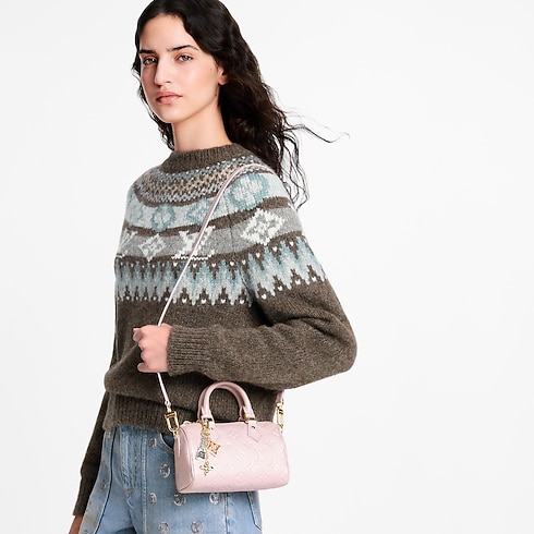 The Nano Speedy is updated as part of the Monogram Empreinte Shimmery collection in a chic Snowy Pearl colorway. It is made from cowhide leather accented with silver-toned hardware and includes a removable charm, showcasing Louis Vuitton signatures such as a padlock and Monogram Flower. The elegant style can be worn multiple ways and is sized to fit daily essentials.