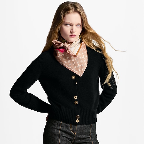 Inspired by Valentine’s Day, the Neverfull Of Love square is a love story against the background of the classic My Neverfull designs. Delicately printed on pure silk, its enchanting pattern combines handbag straps with feminine emblems like flowers and love letters. A Monogram border and a vintage trunk patch add a subtle heritage touch to this exceptional accessory.