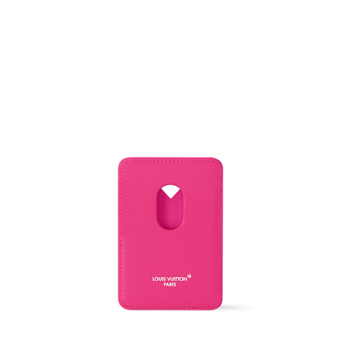 The Magnetic Card Holder in Monogram Macassar canvas is designed, thanks to its magnet compatible with MagSafe magnetic technology, to easily attach to any iPhone 12 and above. It features two card slots in the iconic V shape associated with the House. The colored leather lining and trim bring a pop feel.