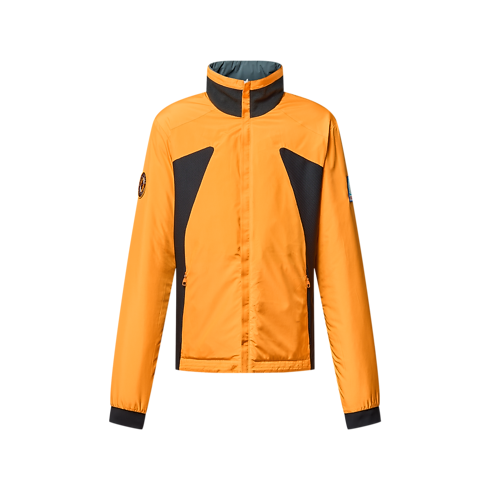 A versatile style that can be worn alone or under a ski shell jacket. This lightly padded technical mid-layer is reversible, with one side in neutral gray tones, while the other brings a pop of bold orange to a look. Black side panels on the gray side are printed with a tone-on-tone allover Monogram, while embroidered ski-themed signature patches on the orange side create a retro sporty mood.