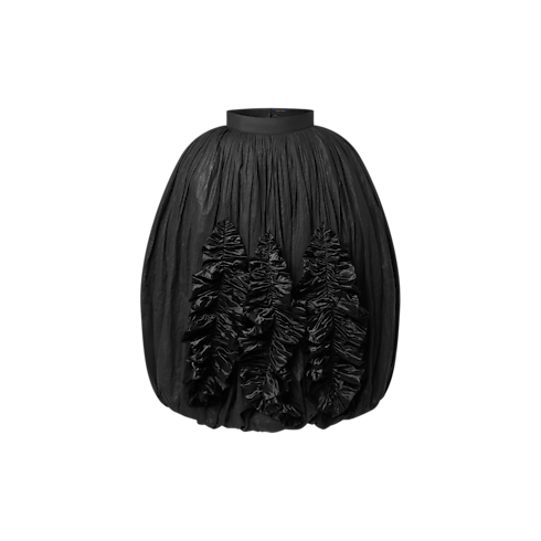 This directional skirt from the runway collection exudes extravagance in an enveloping mid-length balloon shape detailed with tone-on-tone ruffle trims on the front and back for added drama. It is crafted from a lightly coated linen-blend toile for a romantic textured look, while a clean waistband cinches the silhouette for a structured finish.