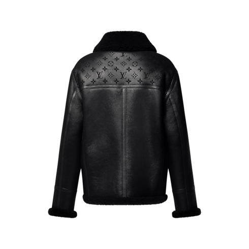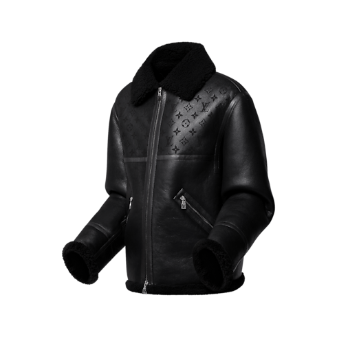 This black shearling bomber jacket is a must-have in any man's winter wardrobe. It features a lasered Monogram motif on the shoulders, adding a touch of sophistication to the classic silhouette. The luxurious monochrome shearling wool ensures warmth and comfort, making this an effortlessly elegant choice that can be dressed up or down.