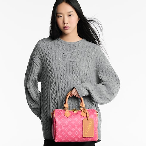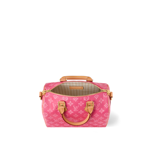 The Speedy Bandoulière 25 is reimagined in Monogram Origine canvas – a vintage-inspired update on the iconic Louis Vuitton pattern, which celebrates its 130th anniversary in 2026. This edition is offered in a vibrant Pink hue, trimmed with a smooth cowhide strap and celebratory address tag. The compact style is perfect for everyday, and includes a flat pocket inside for smaller items.