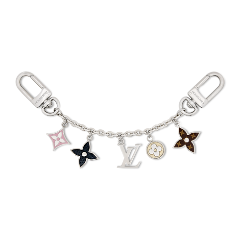 The iconic Spring Street bag chain gets an on-trend update with this version crafted in palladium-colored metal. Easy to attach with its dual snap hooks, it showcases the House’s emblematic LV Initials and Monogram Flowers enhanced with a variety of finishes. This versatile, eye-catching charm brings a touch of timeless elegance to any handbag.