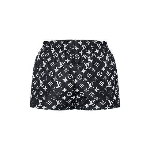 These casual shorts combine a sporty vibe with a seasonal Louis Vuitton signature. Crafted from technical fabric, they are adorned with the collection’s stencil-effect Monogram motif. Details include an elasticated waist, hook closure and two zipped pockets at the sides.