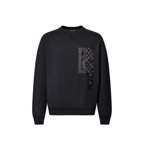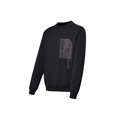 This long-sleeved sweatshirt is crafted in soft black cotton jersey. A tone-on-tone nylon Monogram patch pocket lends a utilitarian accent to the chest, with a zippered entrance and a D-ring strap detail. The interplay of lustrous and matte textures elevates this casual style, which can be worn as a set with a matching T-shirt and shorts.